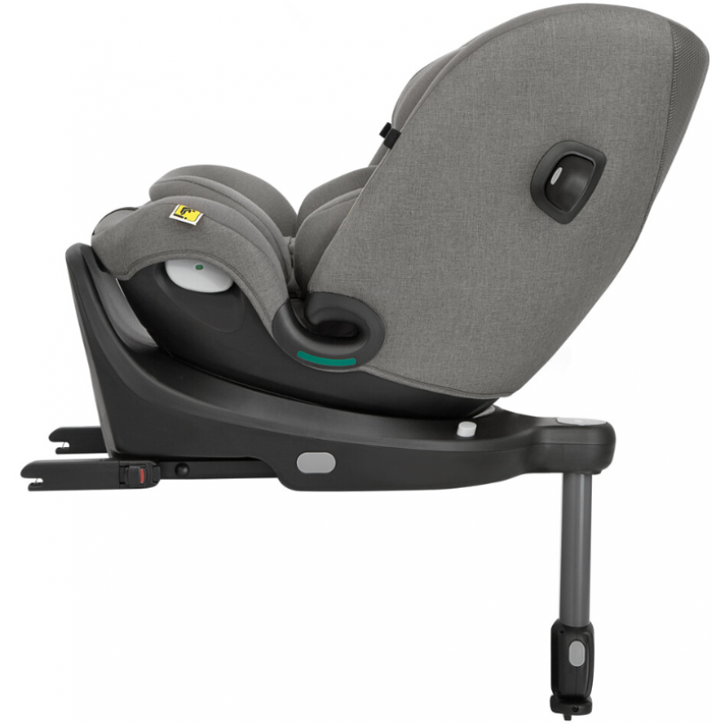 С первых дней, до роста 100 сантиметров устанавливается на базу и опорную ножку с помощью разъемов Isofix. Ребенок пристегивается внутренними пятиточечными ремнями безопасности. Выше 100 сантиметров кресло трансформируется в просторное сиденье, ножка и внутренние ремни безопасности убираются, а надежная установка обеспечивается системой креплений Isofix в сочетании с трехточечным ремнем безопасности автомобиля. Пятипозиционная регулировка наклона спинки позволяет ребенку спать или играть вовремя поездки, в развороте против или по ходу автомобиля. Интуитивно понятный активатор поворота на 360º позволяет свободно менять положение сиденья. Встроенные вентиляционные панели обеспечивают оптимальную температуру тела летом.