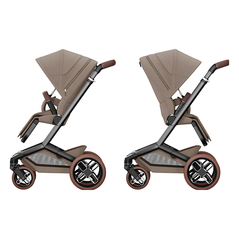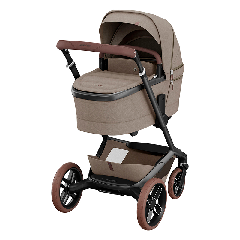 Коляска 2в1 Maxi-Cosi Fame складывается до компактных размеров независимо от того, в каком направлении установлен прогулочный блок. Это означает, что вы можете сложить коляску в любой момент поездки. Подвеска CosiCruise обеспечивает плавную и легкую езду без резких скачков по любым дорогам. Инженеры кампании спроектировали технологичную модель реализовав новые инновационное решения. Система Lumi Ride , позволит безопасно гулять в сумерках освещая путь, а встроенный powerbank дает вам возможность подзарядить аккумулятор смартфона на ходу. Современная интеллектуальная рама коляски совместима с креслами Maxi-Cosi 0+ из серии Family 360 PRO, которые оснащены технологией Slide Tech, позволяющей родителю приблизить сиденье к себе после его крепления к основанию.