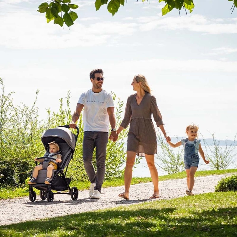 Сиденье из обивки с антибактериальной обработкой SILVADUR™930, отталкивающей микроорганизмы, вызывающие запахи после запотевания или стирки. Наполнение сиденья из дышащего и экологичного волокна Sorona®, состоит на 37% из растительного сырья. Спинка бесступенчато регулируется одной рукой, принимая горизонтальное положения для сна на прогулке. Многоуровневая регулируемая подножка в сочетании со спинкой, образуют удлиненное пространство для отдыха. Панорамное окно капора открывается ребенку в любом положении, и вы всегда можете общаться. Регулируемый водоотталкивающий капюшон с защитой от солнца UPF 50+ расширяется с помощью молнии полностью накрывая салон коляски. Защитный бампер снимается полностью или разворачивается в сторону для лёгкой посадки и высадки ребёнка. Бесступенчато регулируемые по высоте пятиточечные ремни с магнитной системой пристегивания фиксируются одним движеньем. Купить прогулочную коляску Storchenmühle Niko для ребенка с 6 месяцев до 4 лет можно, отправляясь в семейное путешествие. Амортизированные непробиваемые колёса с воздушными камерами мягко едут по любой дороге. Передние колеса фиксируются, позволяя легко маневрировать на поворотах. Механизм складывания одной рукой с функцией Auto-Fold легко срабатывает, сложенная коляска стоит самостоятельно.