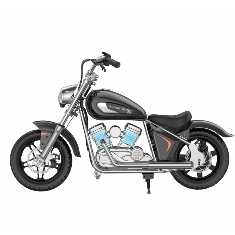Электрический мотоцикл Hyper Gogo M5 разработан для взрослых и опытных гонщиков ростом выше 125 сантиметров. Стильный байк оснащен мощным двигателем, выносливым аккумулятором и надежной тормозной системой. Настоящее урчание двигателя с дымом из выхлопной трубы и аутентичные элементы продуманного дизайна, создают ощущение реалистичности поездки со скоростью 25 км/ч. на расстояние до 30 километров. Внедорожные колеса плавно едут по лесным тропинкам, песку, гравию.