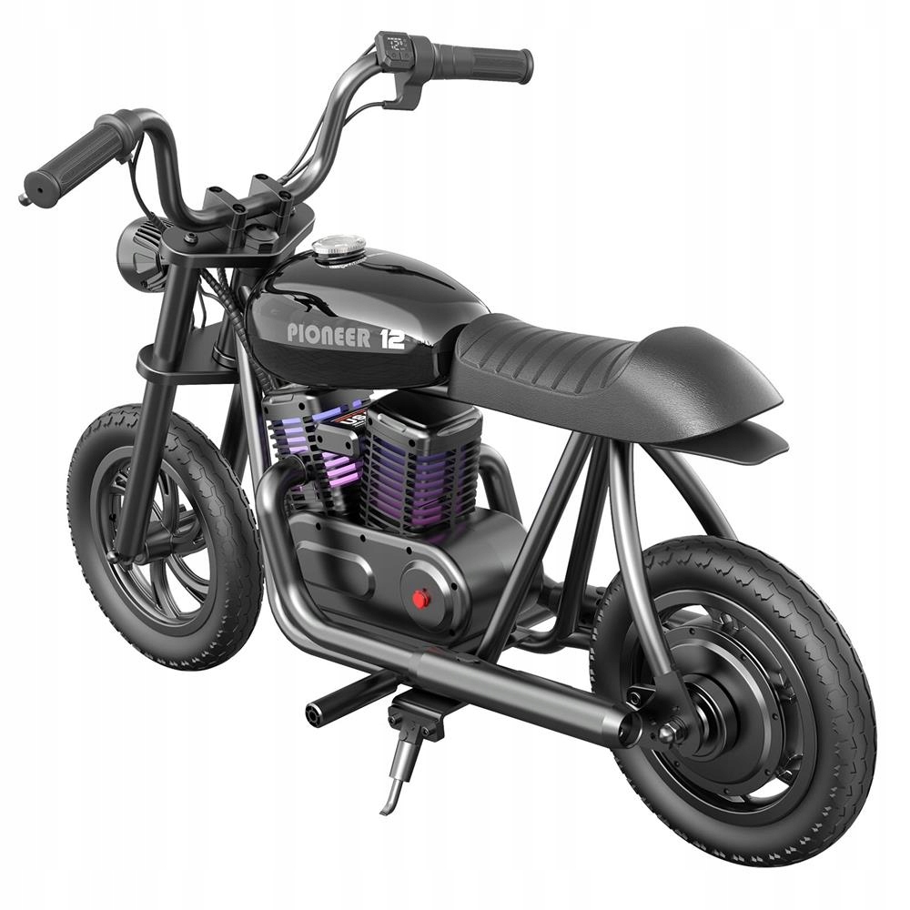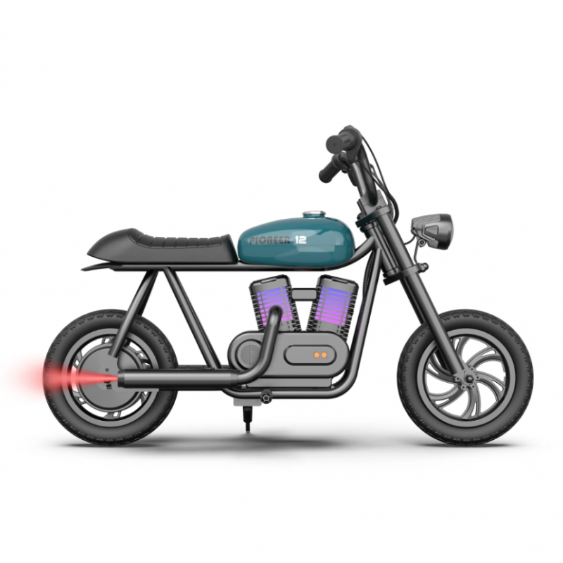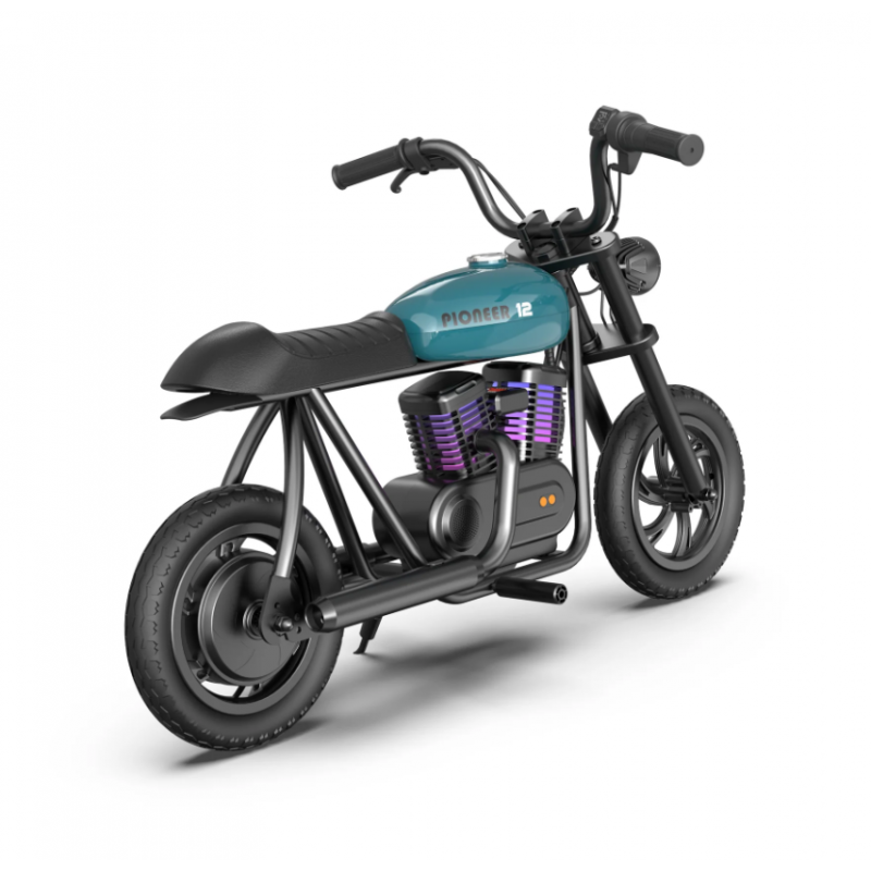 Электрический мотоцикл Hyper Gogo Pioneer 12 Plus понравится ребенку от 6 до 15 лет. Эффектный байк подходит для обучению вождению и драйвовых поездок с друзьями. Кататься можно со скоростью 16 км/ч на протяжении часа, преодолевая горки и заезжая в крутые виражи. Яркие световые эффекты, имитация звука выхлопной трубы и дым создают атмосферу реалистичного приключения, а из Bluetooth-динамиков слышна музыка.