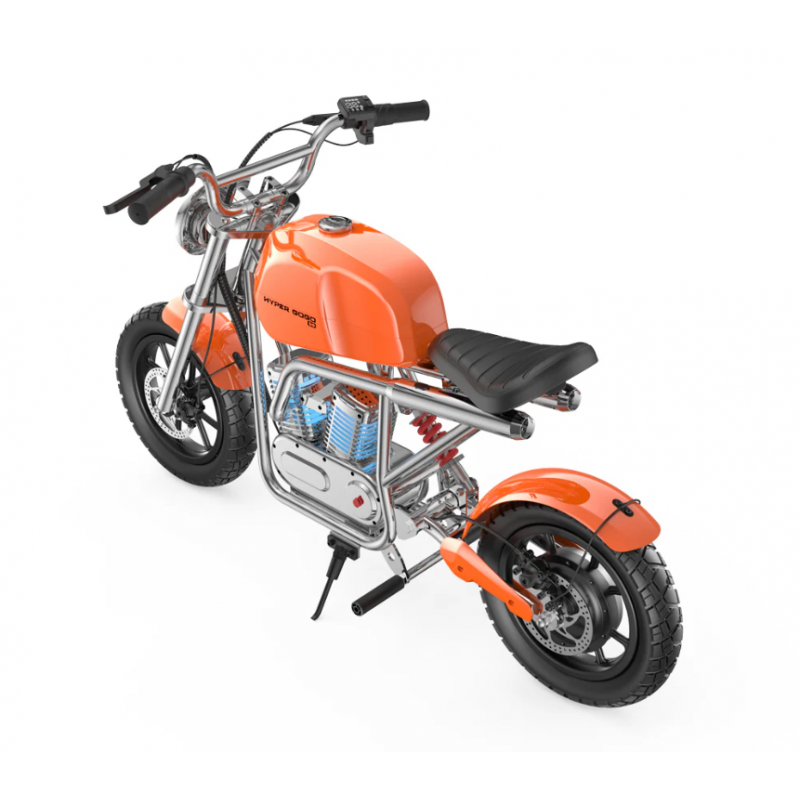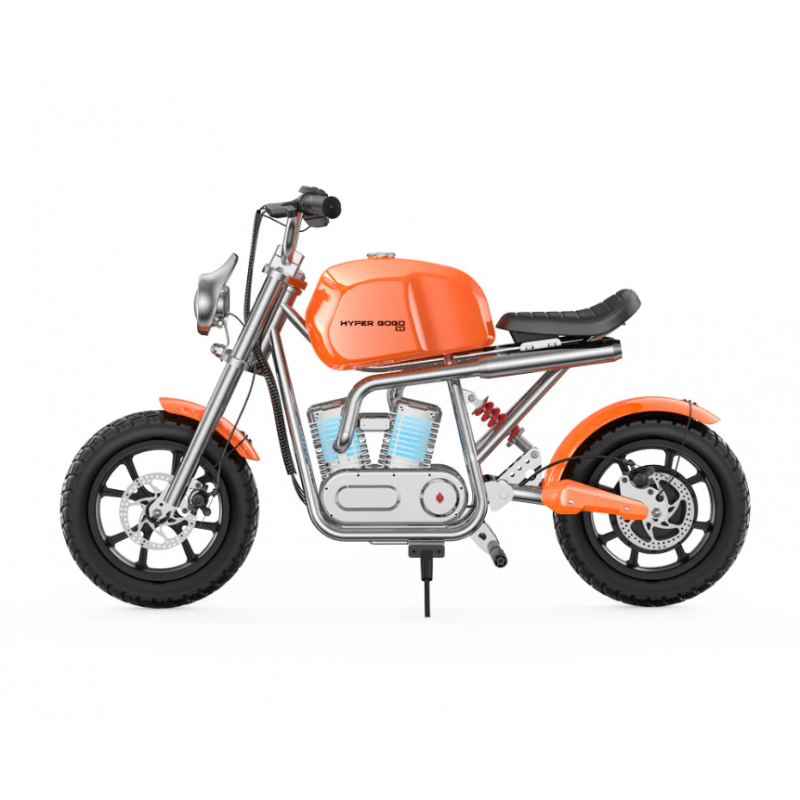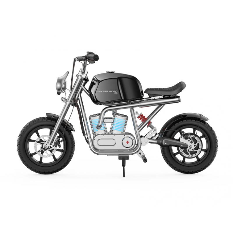 Инновационный жидкокристаллический дисплей на руле показывает скорость движения и оставшийся заряд батареи. Багажный отсек выполнен в дизайне классического топливного бака большого объема, это оптимальное место для хранения необходимых вещей и провизии для долгого путешествия. Купить электрический мотоцикл Hyper Gogo S9 Plus для ребенка можно в подарок, ведь модный байк оснащен различными эффектами. Реалистичный звук мотора дополнен имитацией выброса тумана из выхлопной трубы. Яркое освещение и подсветка дополняют захватывающую атмосферу приключений с друзьями. Приложения HYPER GOGO позволяет на смартфоне включать музыку в динамики, настраивайте светодиодную фару и управлять тремя режимами скорости.