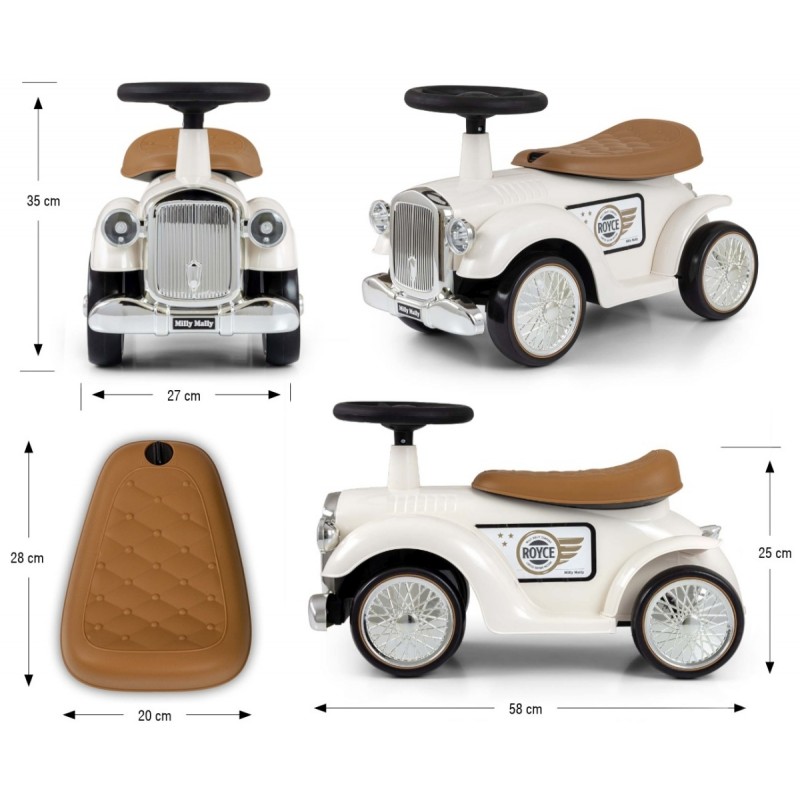 Машина толокар Milly Mally Royce выполнена в винтажном дизайне для маленьких катальщиков. Цвета сияющего игрушечного автомобиля понравятся девочкам и мальчикам, стильные элементы создают атмосферу ретро приключений.