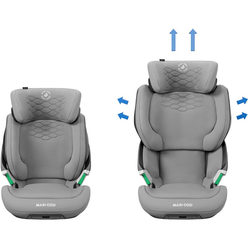 М'яка, приємна до тіла тканина чохла на автокріслі з бамбукового волокна підтримує оптимальну температуру тіла, знижує пітливість. Рифлена поверхня сидіння сприяє проходженню повітря між кріслом та спиною дитини. Автокрісло Maxi Cosi Kore Pro i-Size виглядає компактно, але просторе всередині. У міру дорослішання дитини піднімається вкладка з боковинами, змінюється висота підголів'я. Незалежно від трансформації, крісло постійно виконує функції безпеки при бічному зіткненні. Для додаткового захисту передбачені висувні скловолоконні бустери. Вони забезпечують поглинання енергії удару при бічних зіткненнях, висуваючись вікна.
