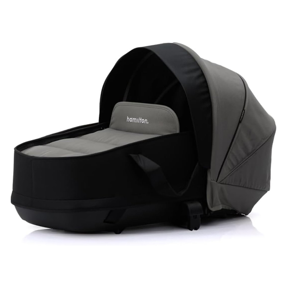 М'яка люлька - це просторе місце для новонародженого малюка. Внутрішній простір дозволяє розташуватися дитині навіть у зимовому одязі та спати з комфортом до дорослішання. Ергономічний матрац забезпечує підтримку та рівне положення тіла під час сну. Продуманий захисний капюшон із розкладною секцією забезпечує захист від сонця, вітру та дощу. Легка люлька Hamilton X1 кріпиться і знімається з коляски в один клік за допомогою адаптерів.